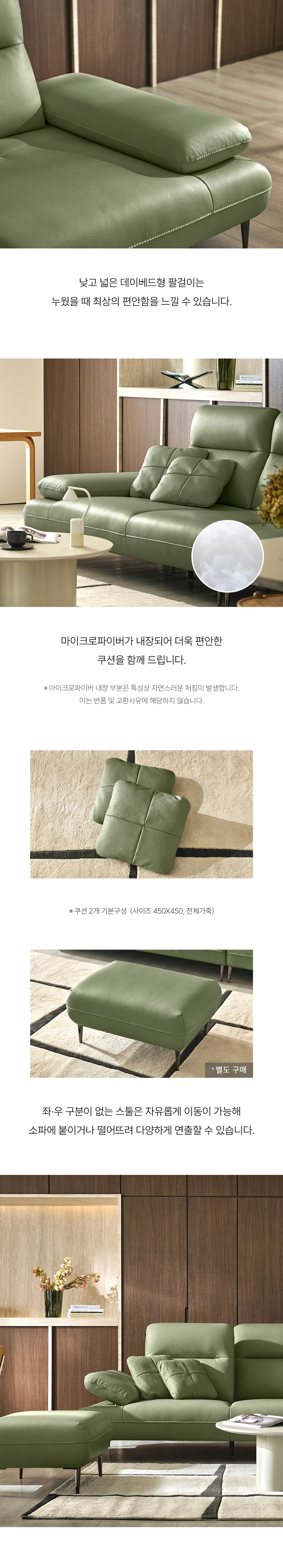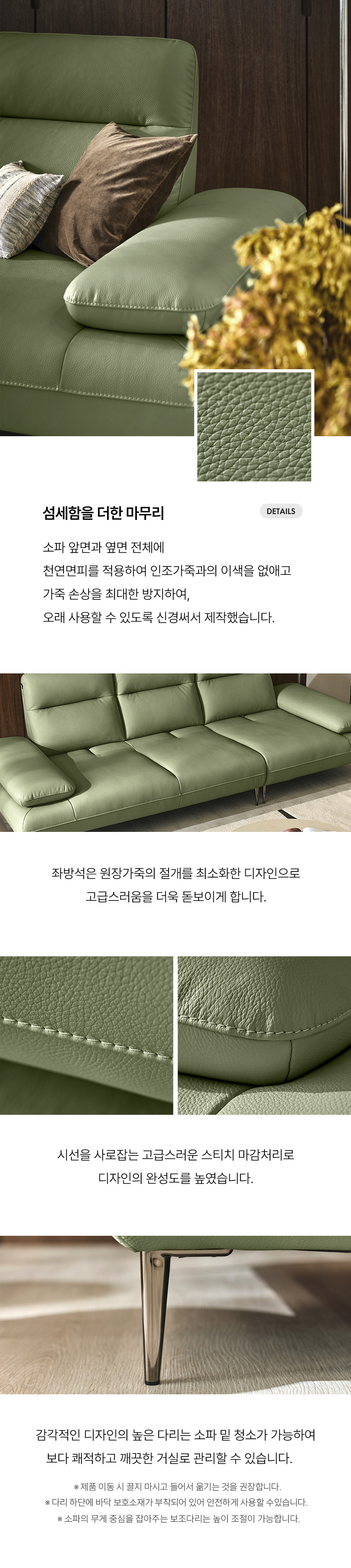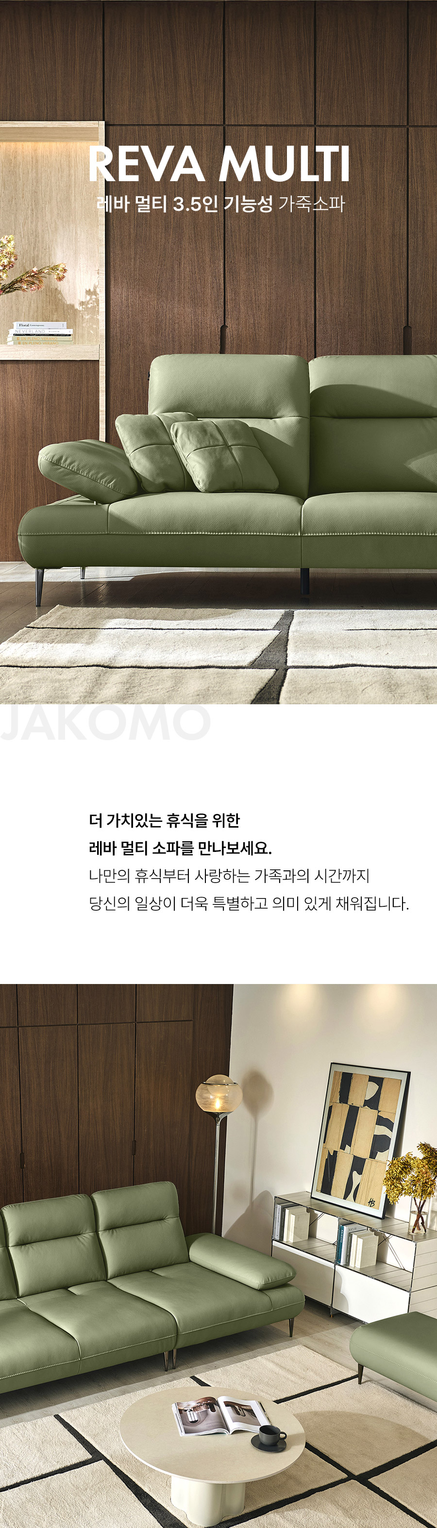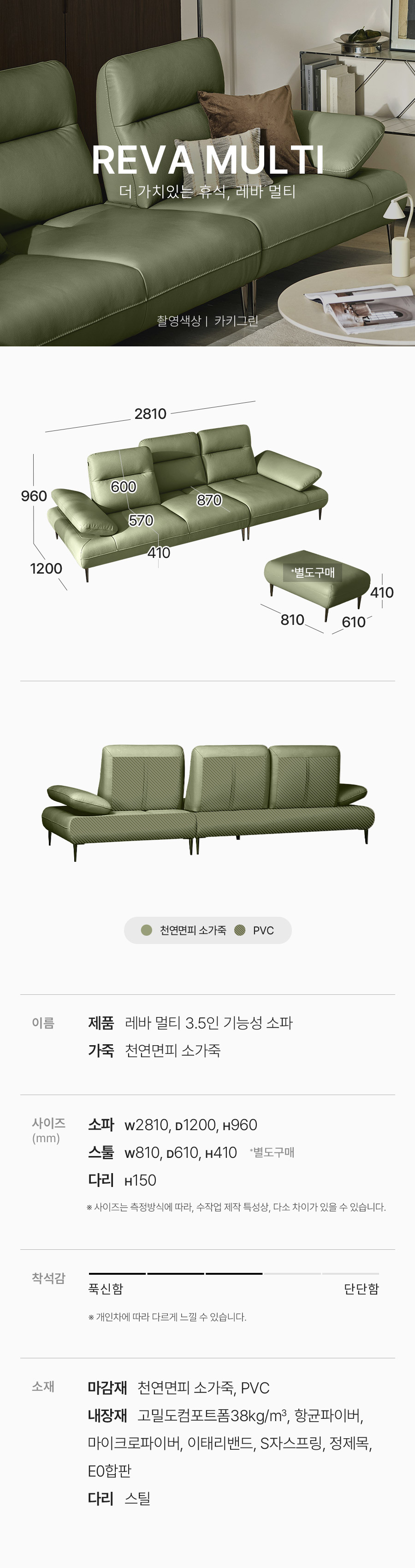 레바 멀티 3.5인 기능성 천연면피 소가죽 소파(전측면가죽적용)+쿠션2개