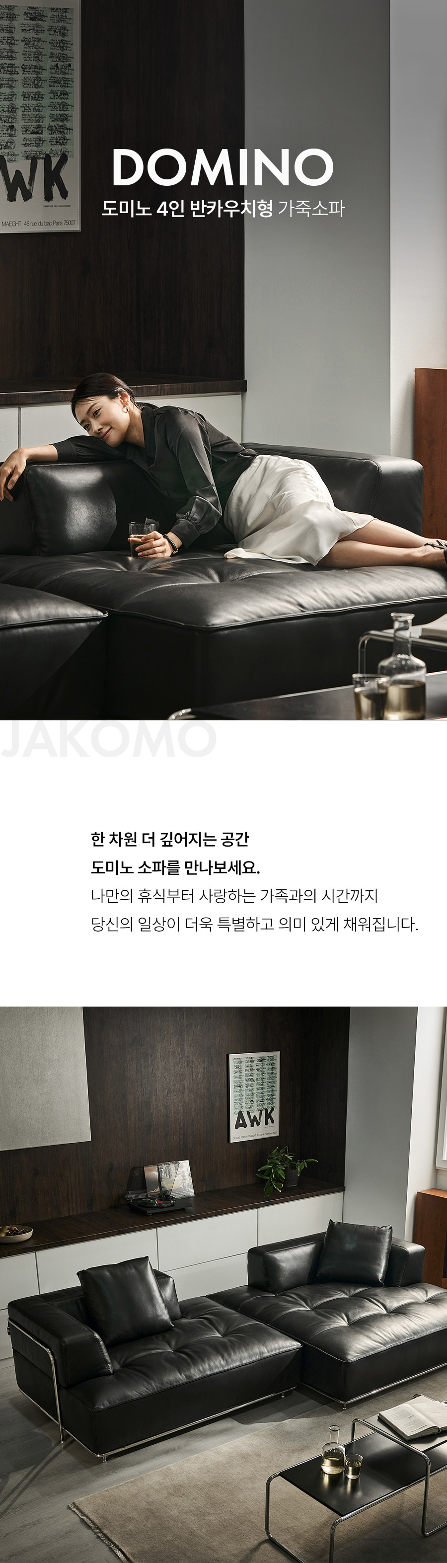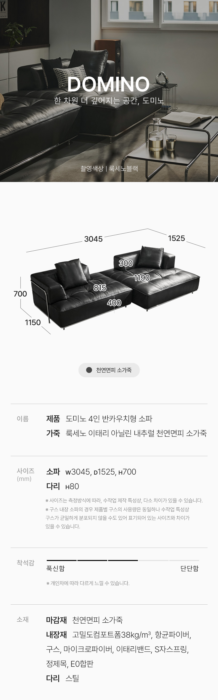 도미노 4인 반카우치형 룩세노 이태리 아닐린 내추럴 천연면피 소가죽 소파(전체가죽적용)+쿠션2개