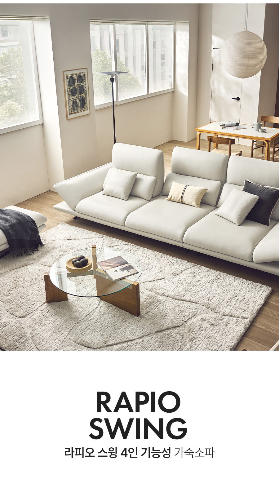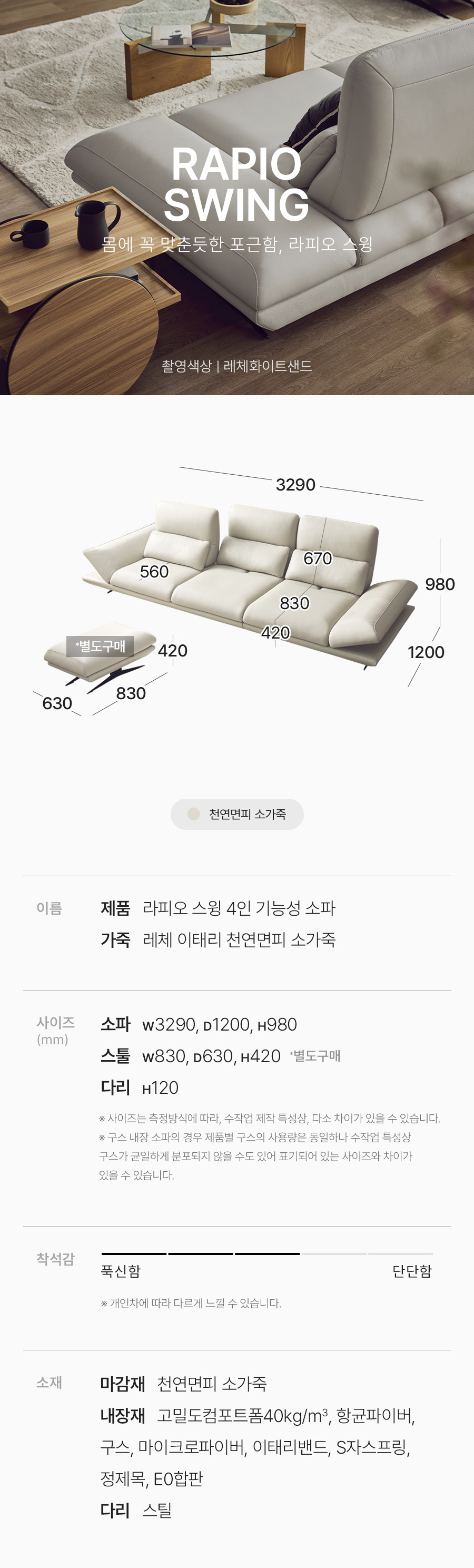 라피오 스윙 4인 기능성 레체 이태리 천연면피 소가죽 소파(전체가죽적용)+쿠션2개
