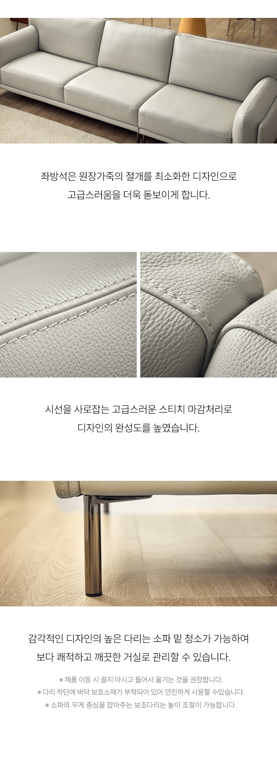 - 새 제품을 개봉 시 날카로운 도구사용을 자제하여 주십시오. (가죽 손상 및 스크레치 발생)