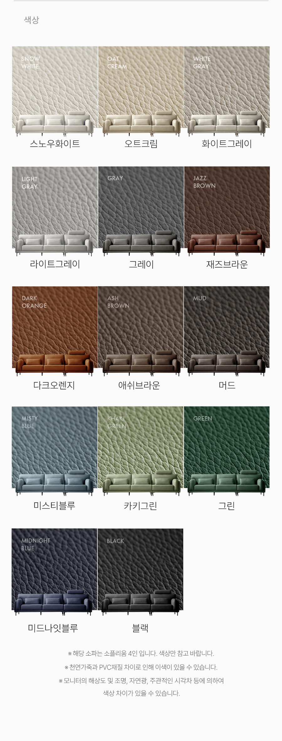 - 색상이나 카우치방향 등의 변경은 주문 후 2일 이내에 가능합니다.