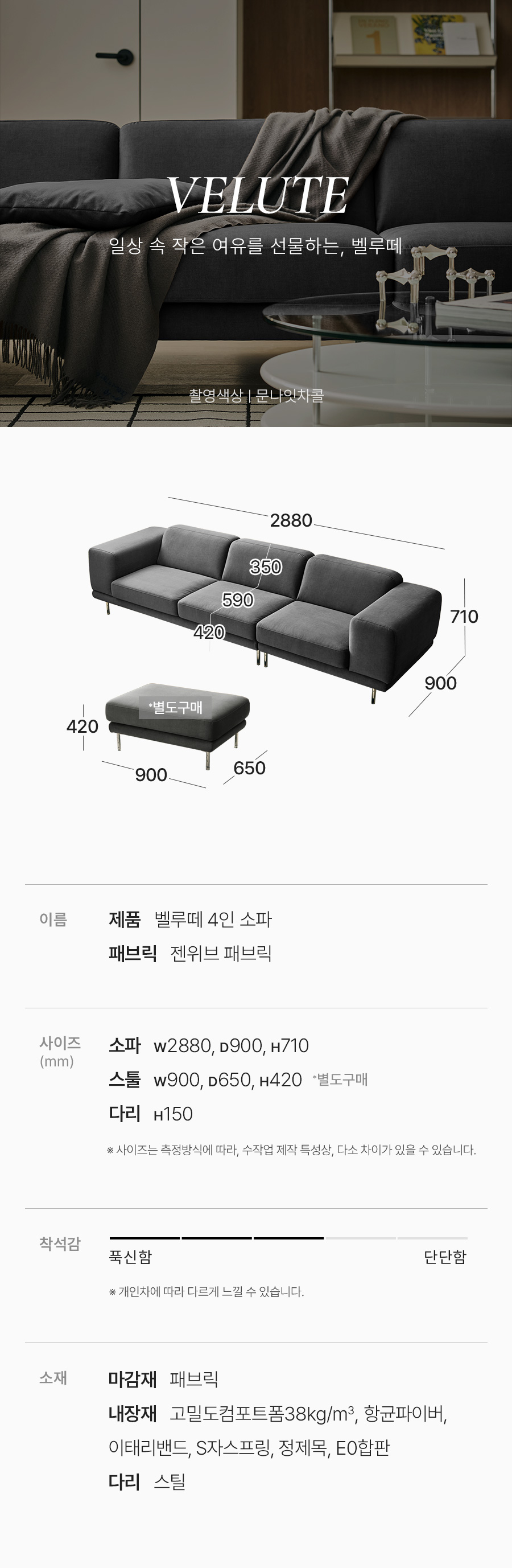 • 벨루떼 4인 젠위브 패브릭 소파+쿠션2개