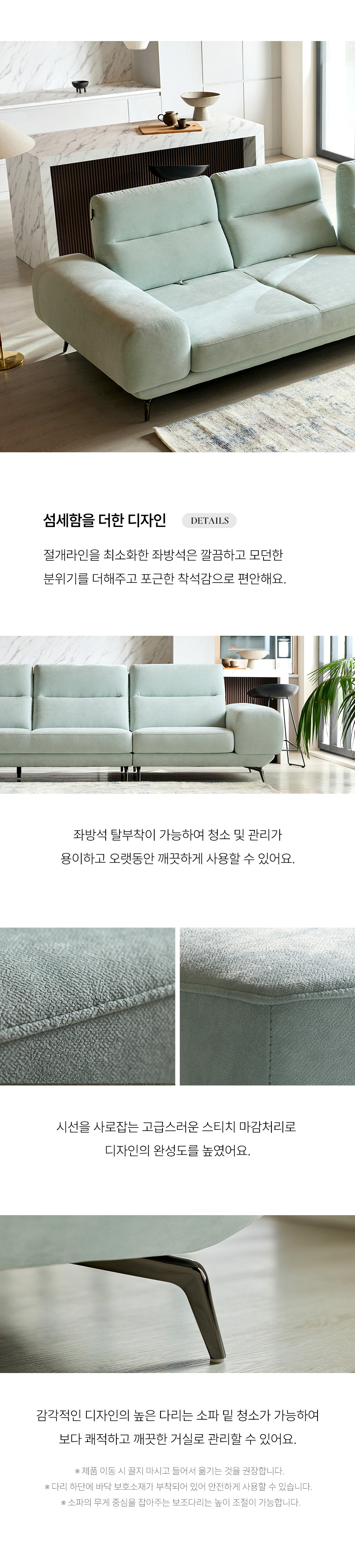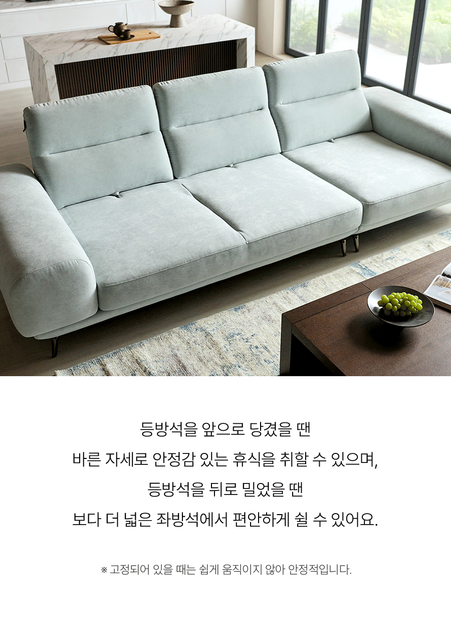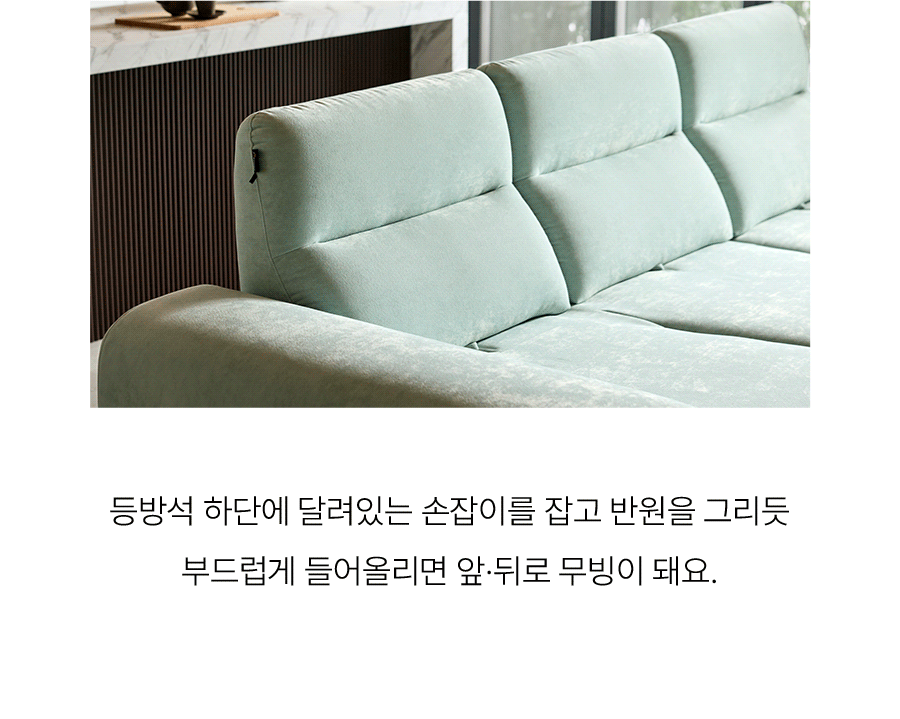 - 소파 등부위 상단부나 팔걸이 위에 올라서지 않도록 주의하여 주십시오. (제품손상의 원인)