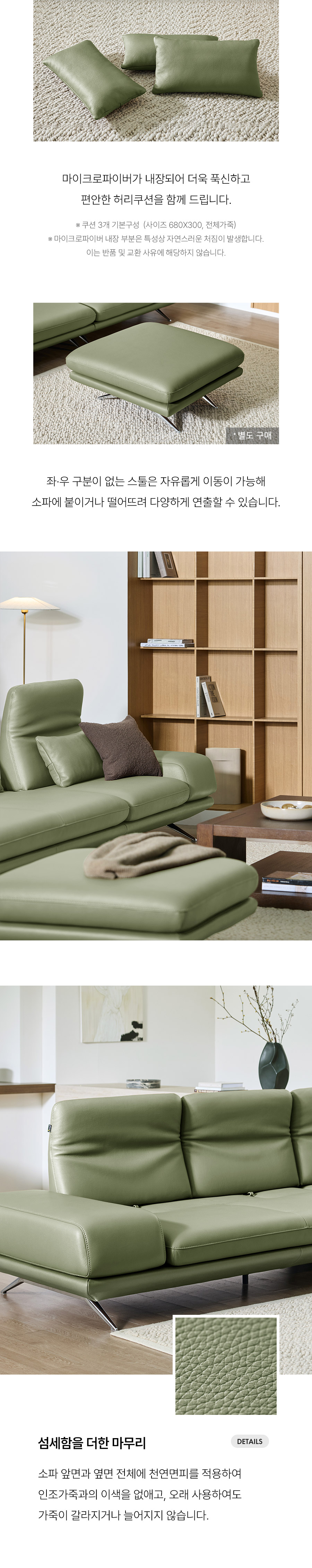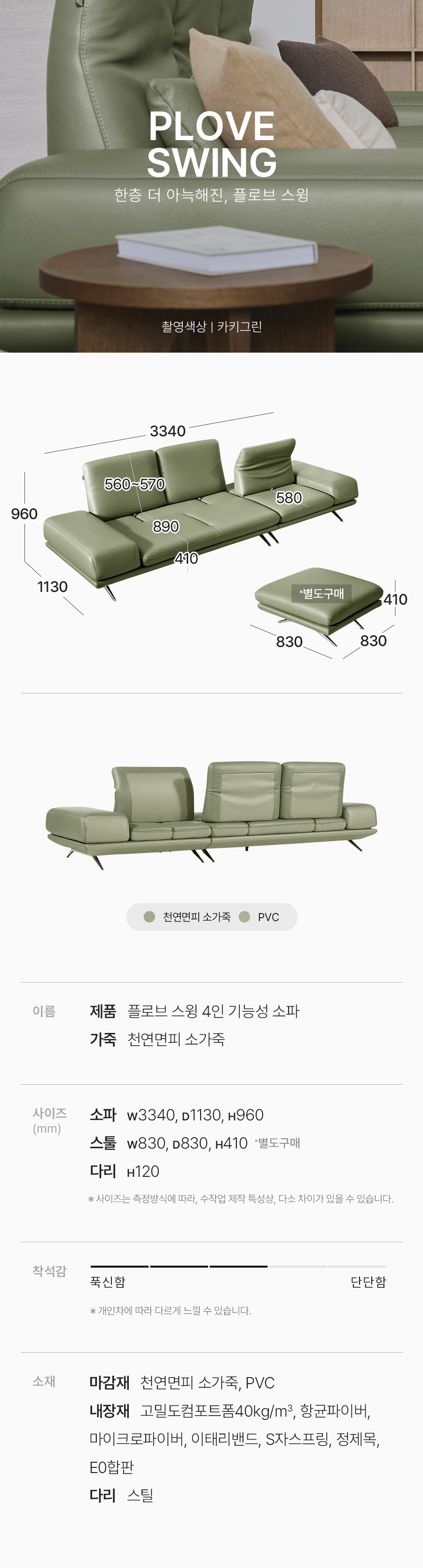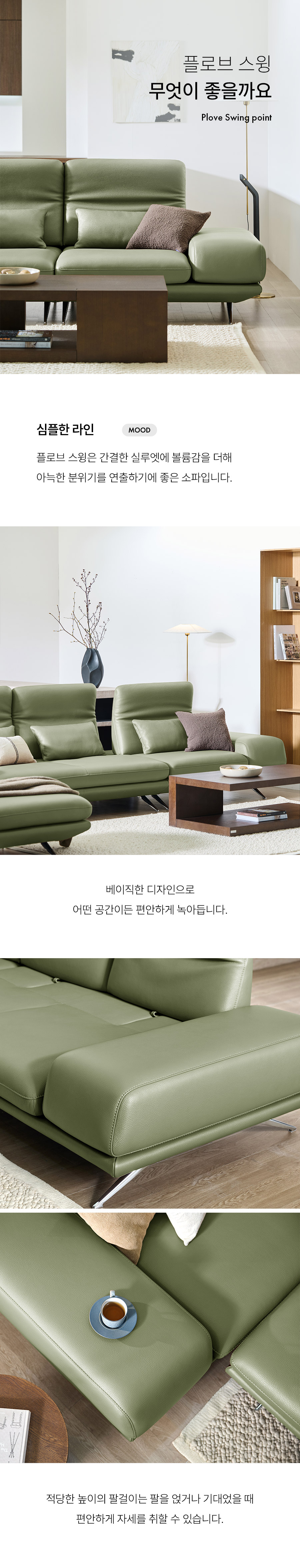 플로브 스윙 4인 기능성 천연면피 소가죽 소파(전측면가죽적용)+쿠션3개