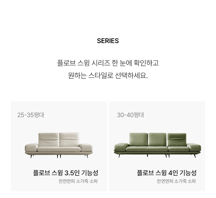 이미지 더보기[Make Spring 23%] 플로브 스윙 4인 기능성 천연면피 소가죽 소파(전측면가죽적용)+쿠션3개
