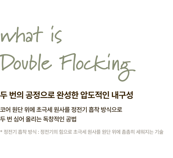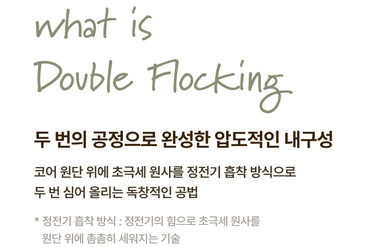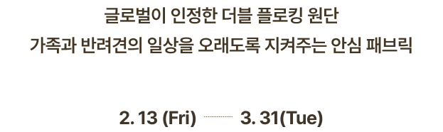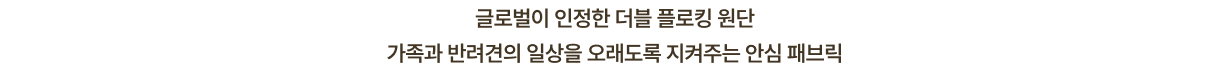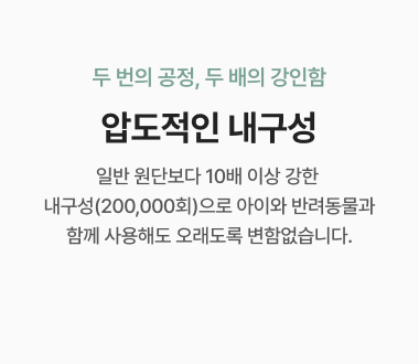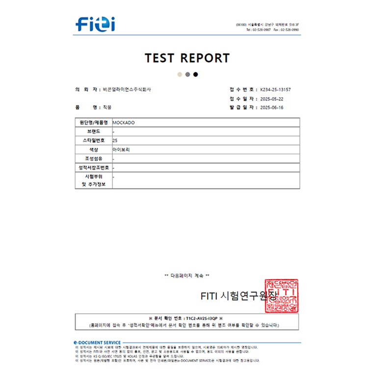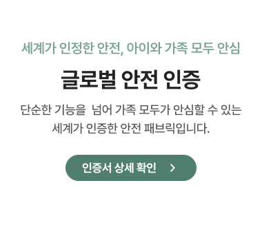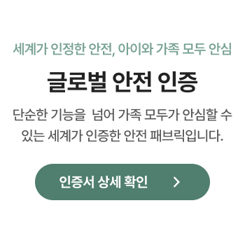 국내 공식 시험 연구기관 FITI에서 실시하는 유해물질, 내구성 검증 아릴아민, 포름알데히드, 알러지성 염료 등 실질적 유해성 테스트 황색포도상구균, 폐렴균 정균감소율 99.9% 검증 완료